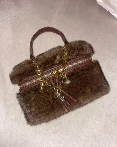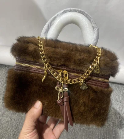 Step into the season with our stunning brown faux fur handbag that redefines winter elegance. This exquisite piece features a high-quality, ultra-soft plush texture paired with a structured vanity-style silhouette. The rich chocolate hue serves as a versatile secondary keyword for your seasonal wardrobe coordination. Whether you are attending a festive gala or a cozy dinner date, this compact bag offers the perfect blend of luxury and functionality. Secure this limited-edition plush accessory today to elevate your personal style with a touch of sophisticated warmth.