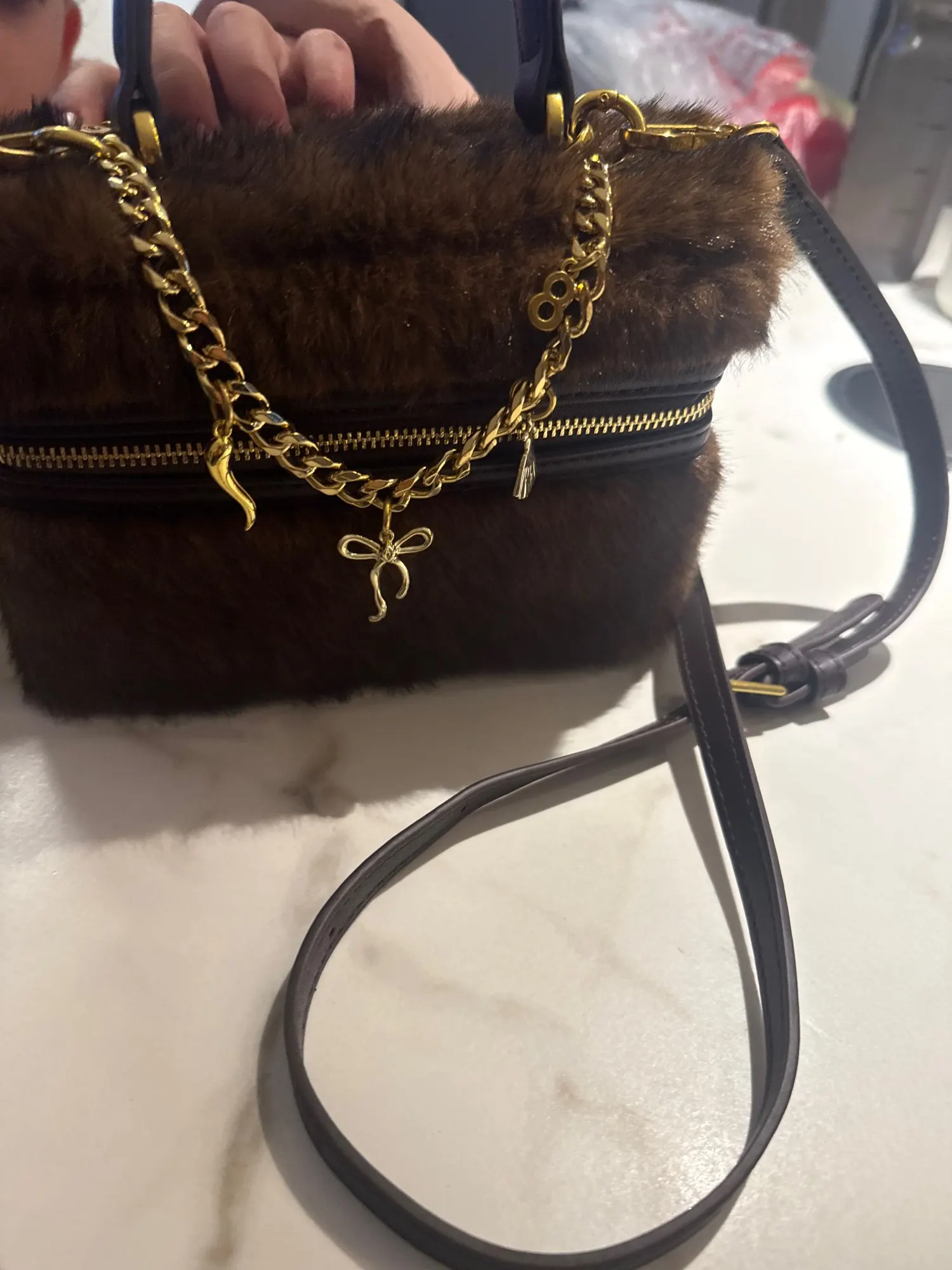 • Combine the gold-tone charm chain with matching jewelry to emphasize the bag's luxurious gold hardware.